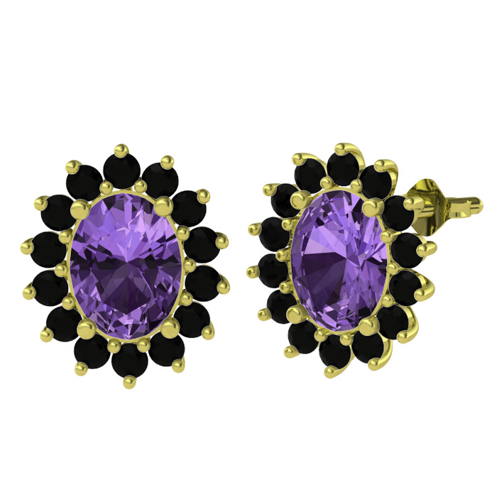 Ametist ve siyah zirkon 8 ayar altın küpe