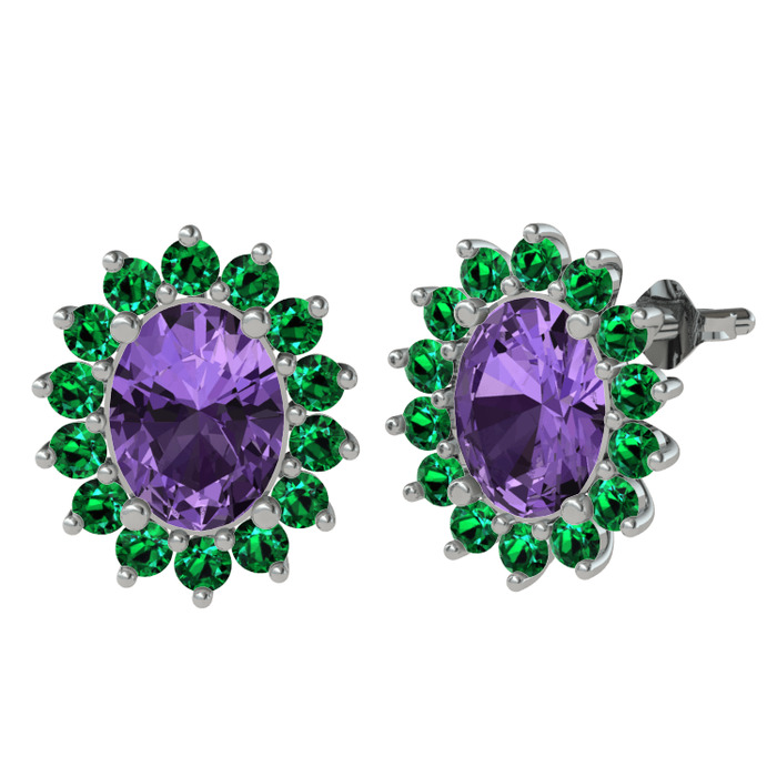 Ametist ve yeşil kuvars 14 ayar beyaz altın küpe
