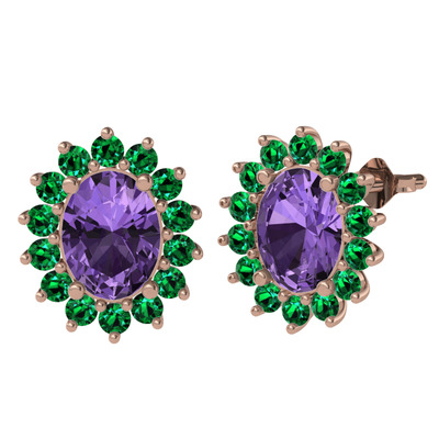 Ametist ve yeşil kuvars 14 ayar rose altın küpe