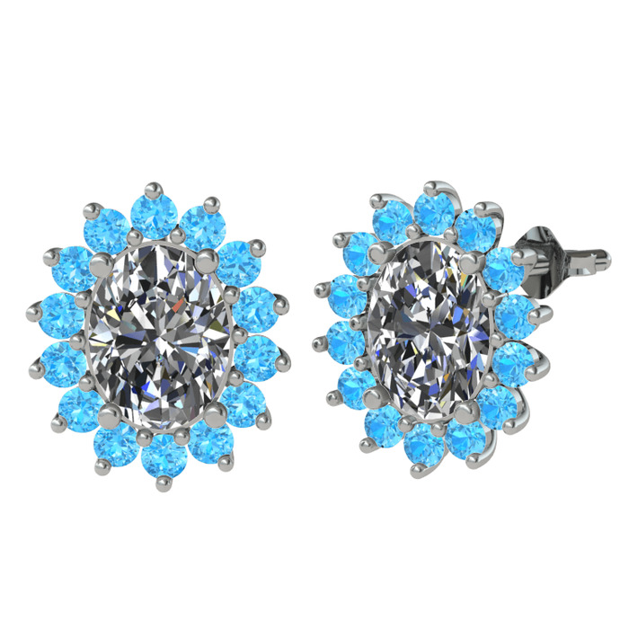 Beyaz zirkon ve akuamarin 18 ayar beyaz altın küpe