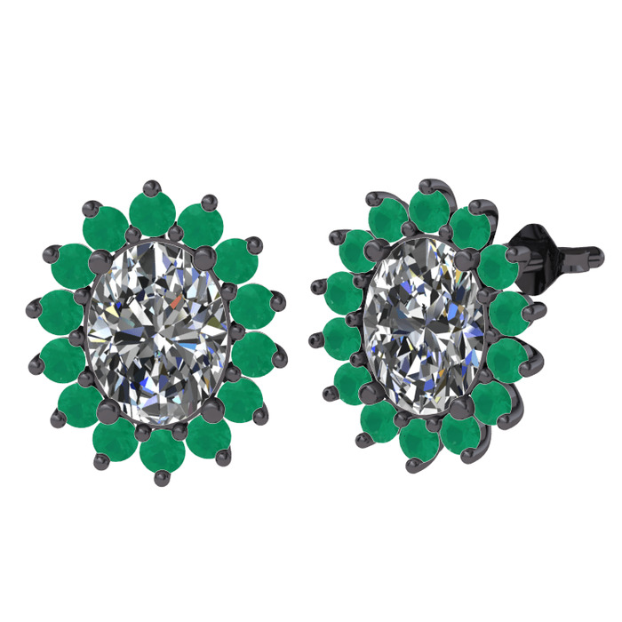 Beyaz zirkon ve kök zümrüt 925 ayar siyah rodyum kaplama gümüş küpe