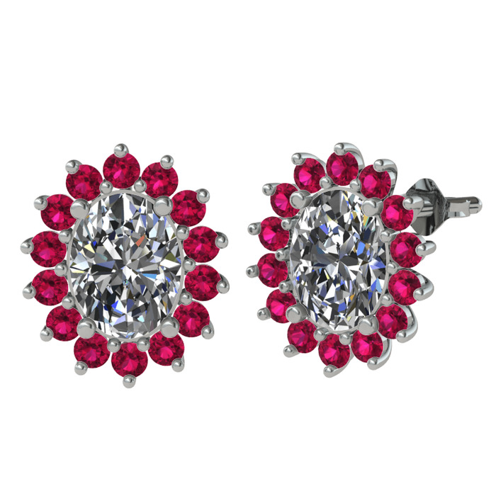 Beyaz zirkon ve rodolit garnet 14 ayar beyaz altın küpe