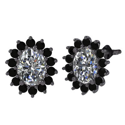Beyaz zirkon ve siyah zirkon 925 ayar siyah rodyum kaplama gümüş küpe
