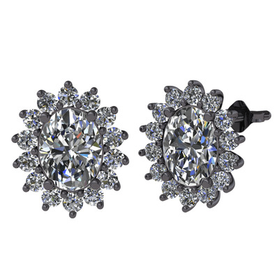 Beyaz zirkon ve swarovski 925 ayar siyah rodyum kaplama gümüş küpe