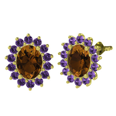 Dumanlı kuvars ve ametist 14 ayar altın küpe