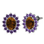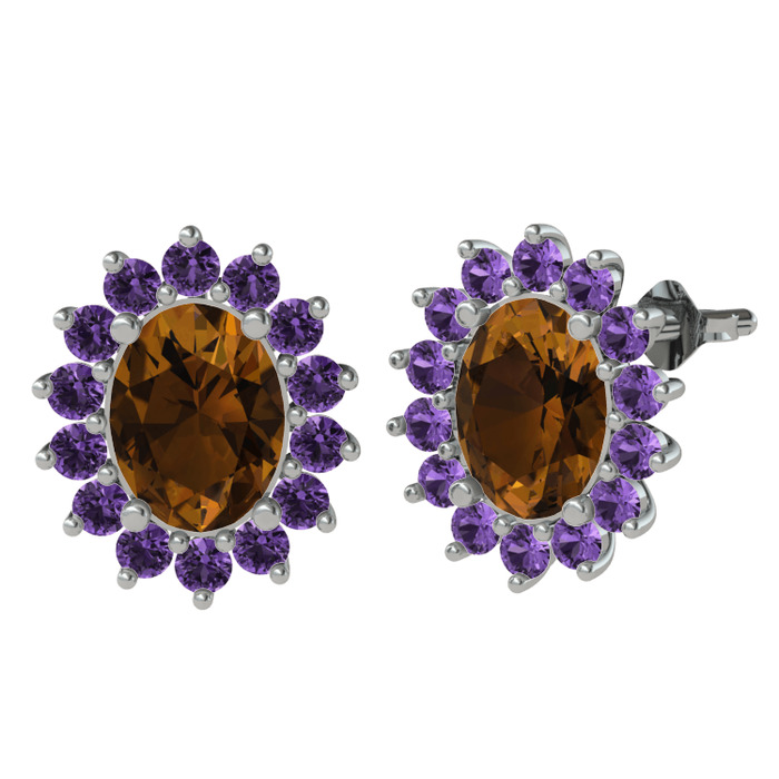 Dumanlı kuvars ve ametist 18 ayar beyaz altın küpe