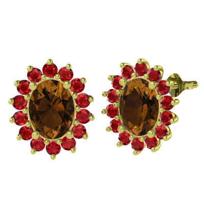 Dumanlı kuvars ve garnet 18 ayar altın küpe