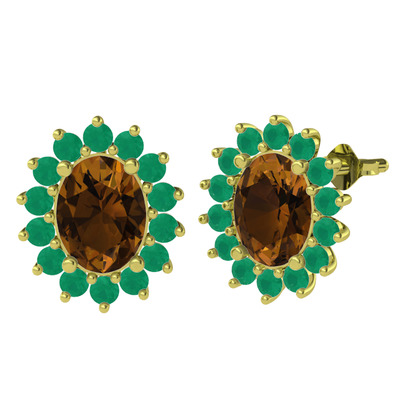 Dumanlı kuvars ve kök zümrüt 8 ayar altın küpe