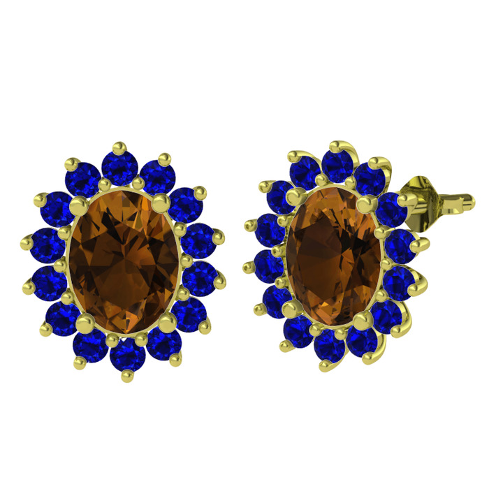 Dumanlı kuvars ve lab safir 18 ayar altın küpe