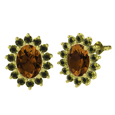 Dumanlı kuvars ve peridot 925 ayar altın kaplama gümüş küpe