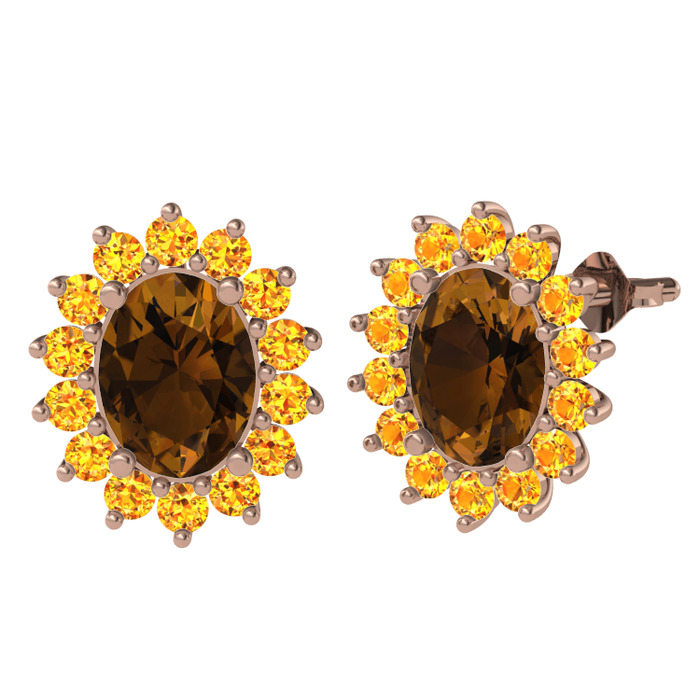 Dumanlı kuvars ve sitrin 14 ayar rose altın küpe