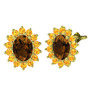 Dumanlı kuvars ve sitrin 8 ayar altın küpe