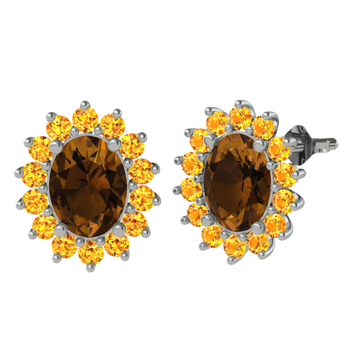Dumanlı kuvars ve sitrin 925 ayar gümüş küpe