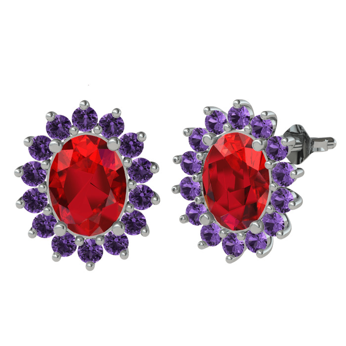 Garnet ve ametist 14 ayar beyaz altın küpe