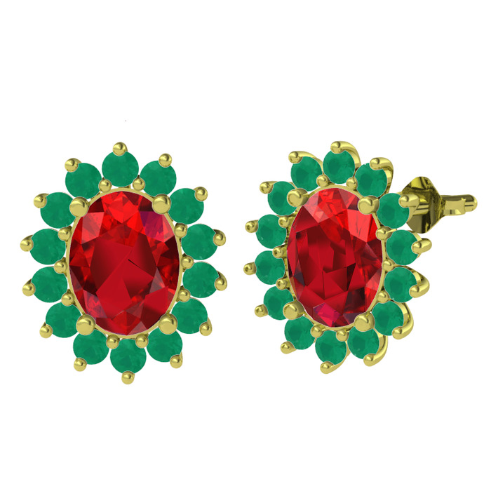 Garnet ve kök zümrüt 925 ayar altın kaplama gümüş küpe