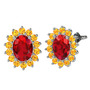 Garnet ve sitrin 8 ayar beyaz altın küpe
