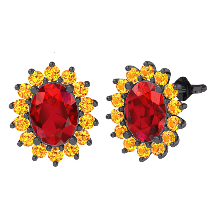 Garnet ve sitrin 925 ayar siyah rodyum kaplama gümüş küpe