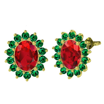 Garnet ve yeşil kuvars 18 ayar altın küpe