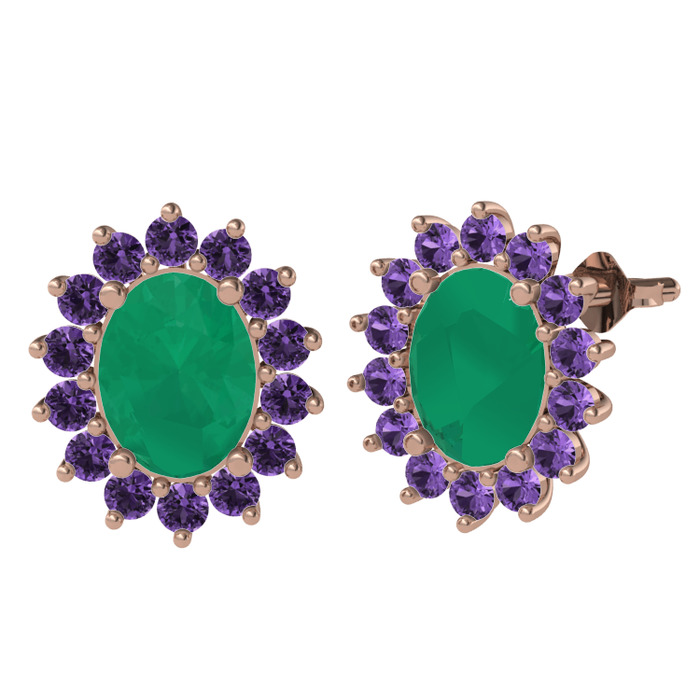 Kök zümrüt ve ametist 925 ayar rose altın kaplama gümüş küpe