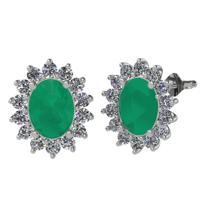 Kök zümrüt ve beyaz zirkon 8 ayar beyaz altın küpe