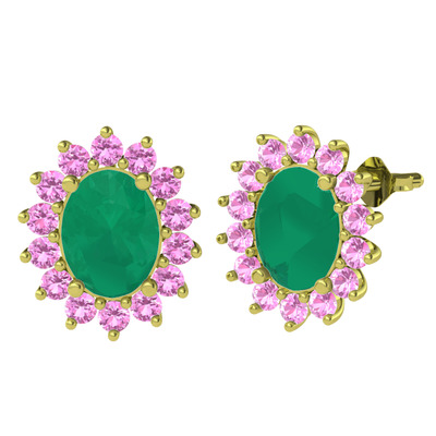 Kök zümrüt ve pembe kuvars 8 ayar altın küpe