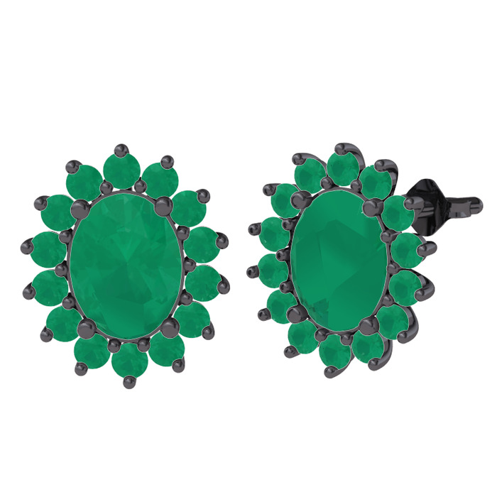Kök zümrüt 925 ayar siyah rodyum kaplama gümüş küpe