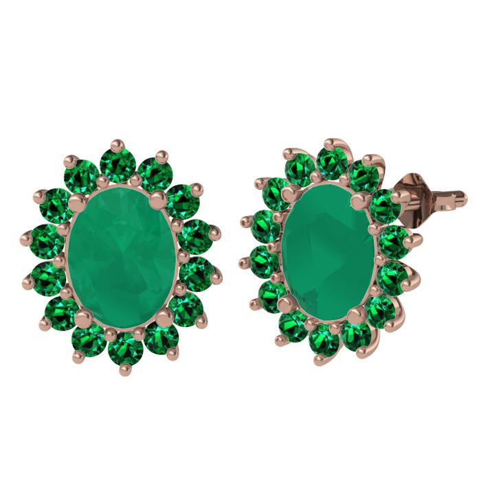 Kök zümrüt ve yeşil kuvars 14 ayar rose altın küpe