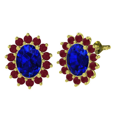 Lab safir ve kök yakut 925 ayar altın kaplama gümüş küpe