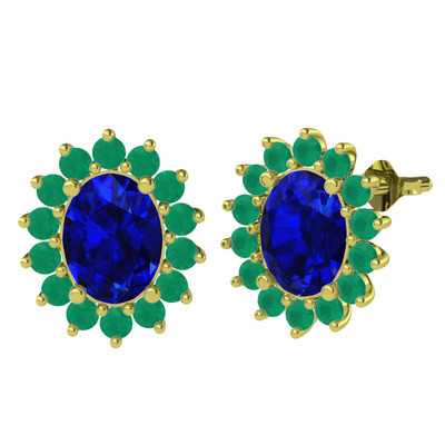 Lab safir ve kök zümrüt 925 ayar altın kaplama gümüş küpe