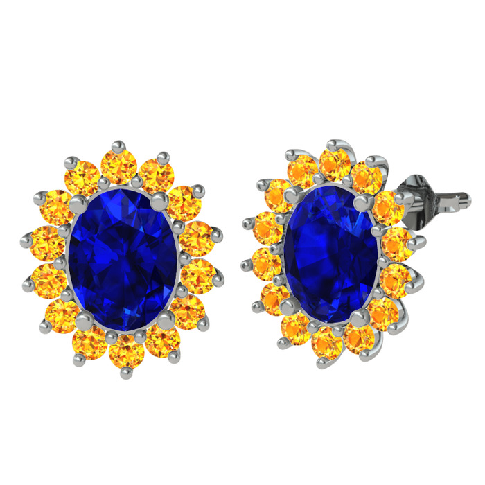 Lab safir ve sitrin 8 ayar beyaz altın küpe