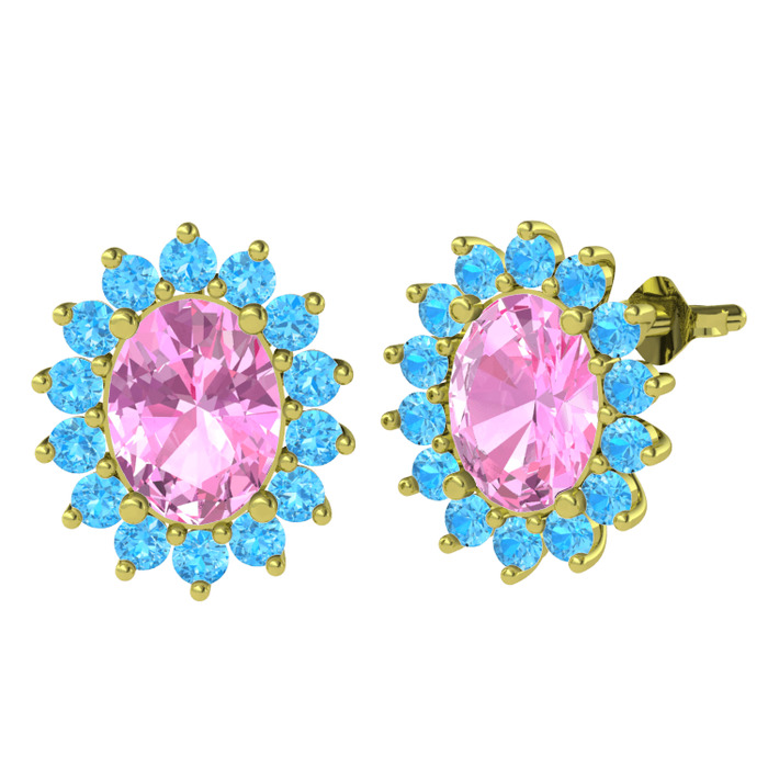 Pembe kuvars ve akuamarin 14 ayar altın küpe