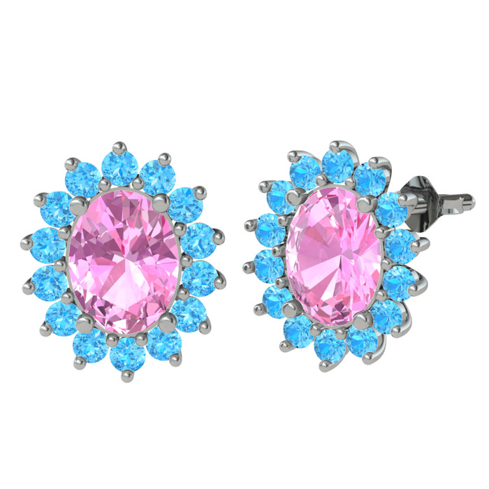 Pembe kuvars ve akuamarin 8 ayar beyaz altın küpe