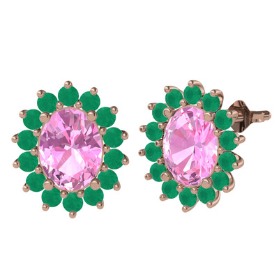 Pembe kuvars ve kök zümrüt 14 ayar rose altın küpe