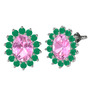 Pembe kuvars ve kök zümrüt 18 ayar beyaz altın küpe