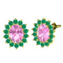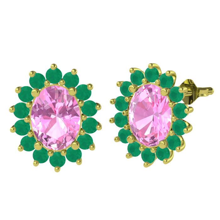 Pembe kuvars ve kök zümrüt 8 ayar altın küpe
