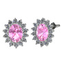 Pembe kuvars ve pırlanta 8 ayar beyaz altın küpe (1.008 karat)