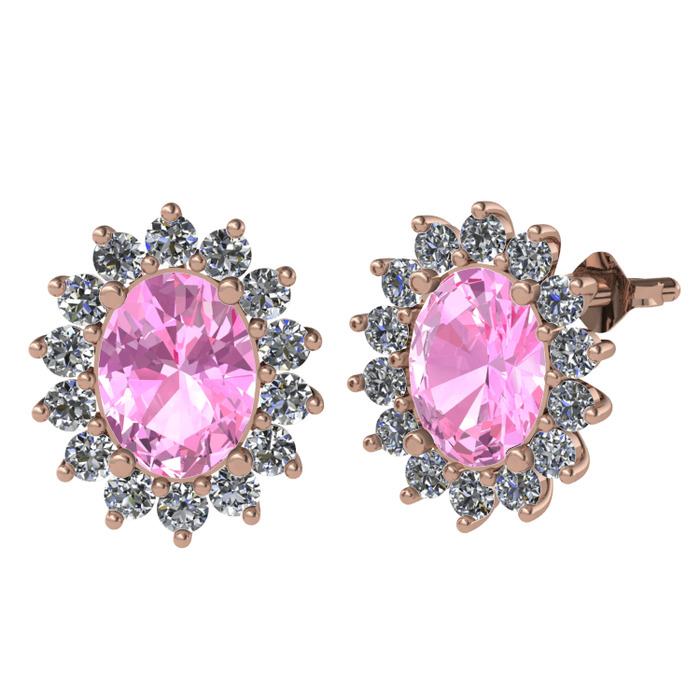 Pembe kuvars ve pırlanta 925 ayar rose altın kaplama gümüş küpe (1.008 karat)