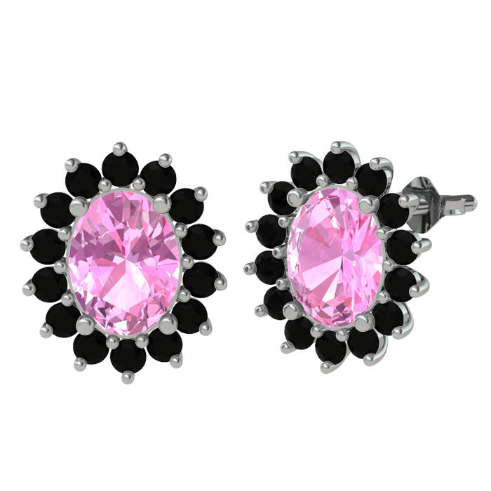 Pembe kuvars ve siyah zirkon 14 ayar beyaz altın küpe