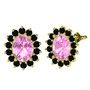 Pembe kuvars ve siyah zirkon 8 ayar altın küpe
