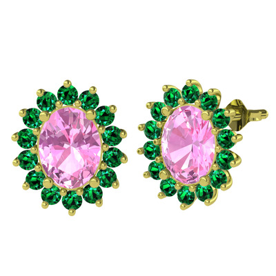 Pembe kuvars ve yeşil kuvars 14 ayar altın küpe