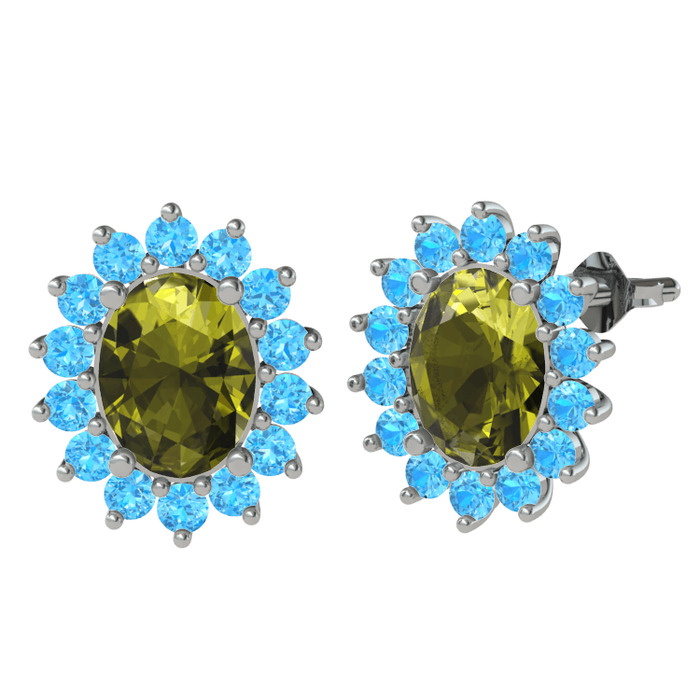 Peridot ve akuamarin 925 ayar gümüş küpe