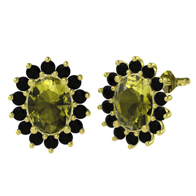 Peridot ve siyah zirkon 8 ayar altın küpe