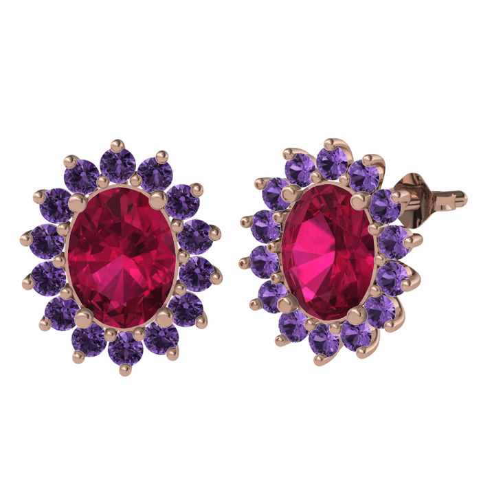 Rodolit garnet ve ametist 14 ayar rose altın küpe