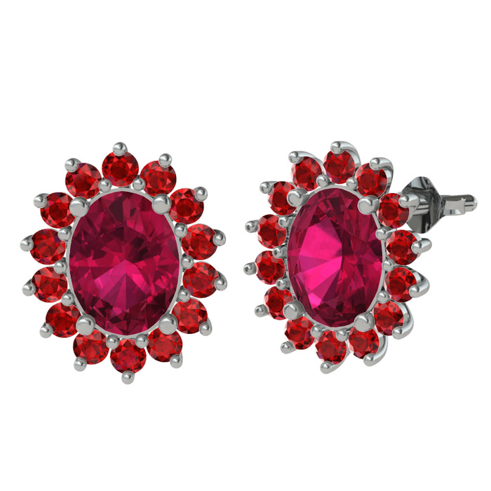 Rodolit garnet ve garnet 14 ayar beyaz altın küpe