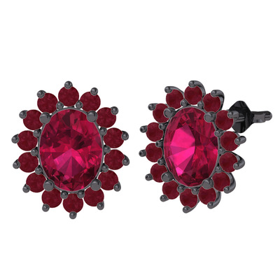 Rodolit garnet ve kök yakut 925 ayar siyah rodyum kaplama gümüş küpe