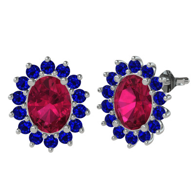 Rodolit garnet ve lab safir 925 ayar gümüş küpe