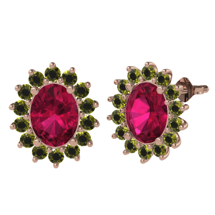 Rodolit garnet ve peridot 14 ayar rose altın küpe