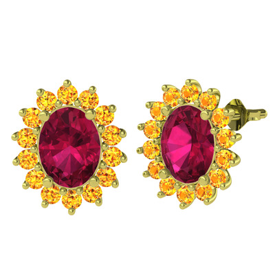 Rodolit garnet ve sitrin 925 ayar altın kaplama gümüş küpe