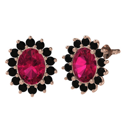 Rodolit garnet ve siyah zirkon 18 ayar rose altın küpe