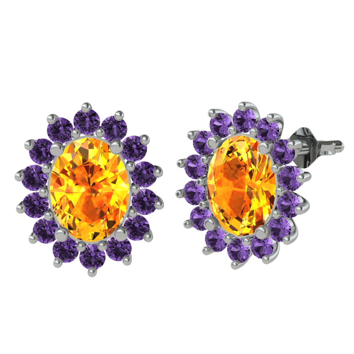 Sitrin ve ametist 18 ayar beyaz altın küpe